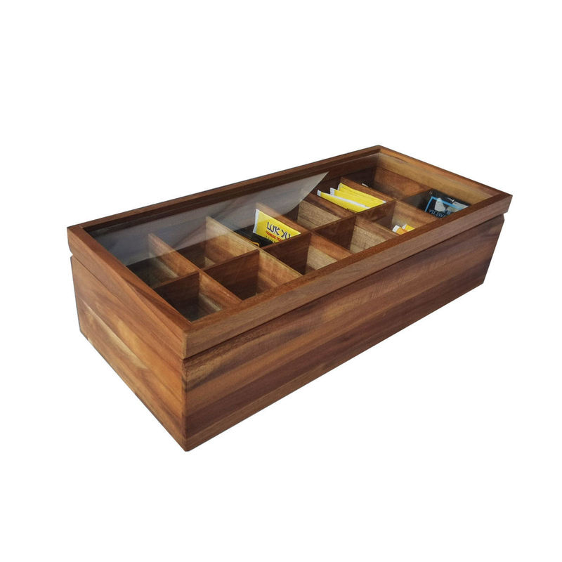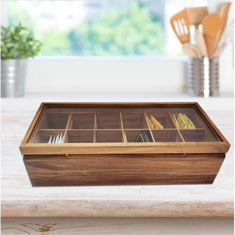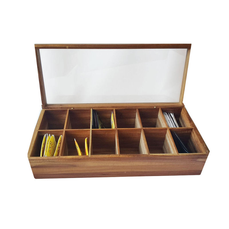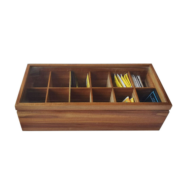 Organisateur en bois solide With Glass Lid de stockage de Tea Bag Box d'organisateur classé par compartiments plats réglables du coffre 12