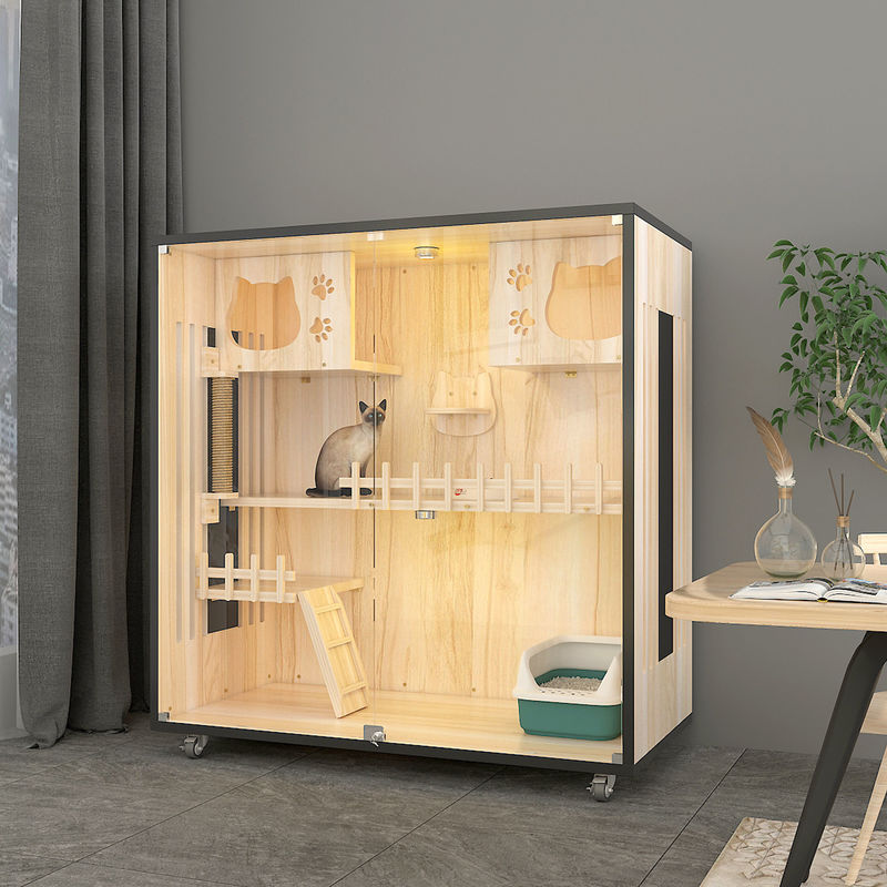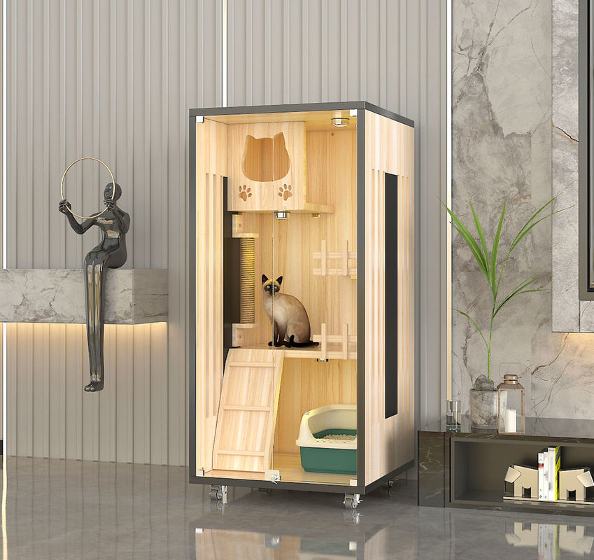 Villa en bois : La villa de chat est le principal organisme des meubles entiers, habituellement fait de bois solide de haute qualité ou panneaux en bois, après conception et le traitement soigneux. La villa en bois fournit un espace vital privé et confortable pour les chats, leur donnant un endroit sûr pour se reposer et jouer.