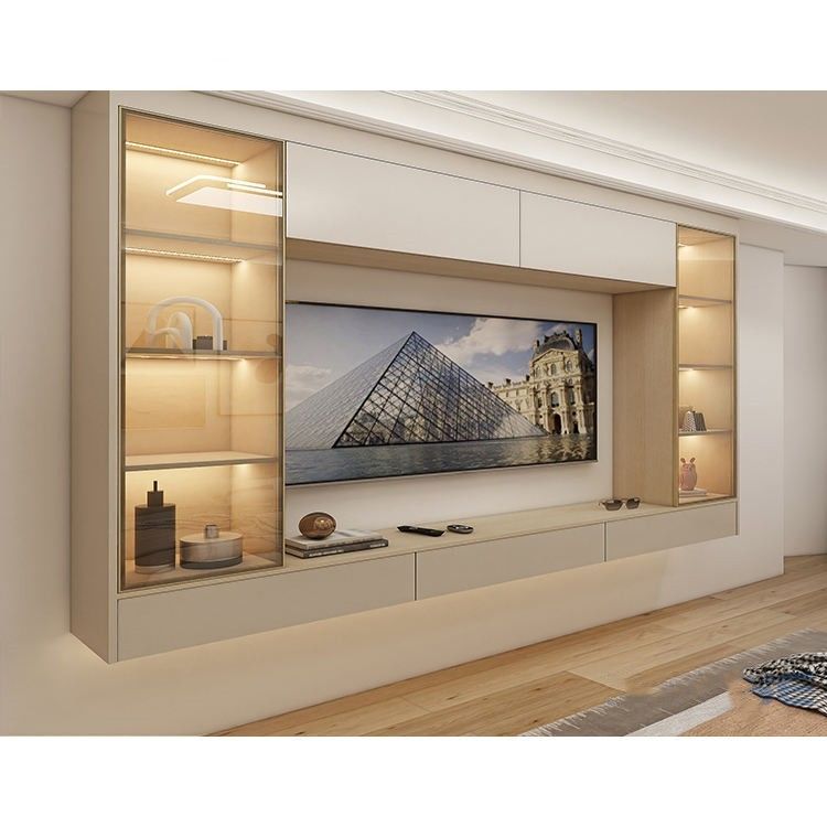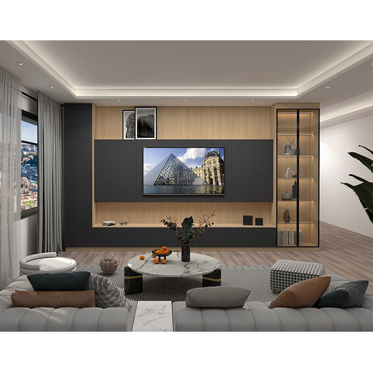 Salon : L'armoire accrochante de l'écran TV est l'un des meubles principaux dans le salon. L'armoire de TV accrochant sur le mur du salon fournit non seulement un placement approprié pour la TV, mais utilise également effectivement l'espace, rendant le salon propre et beau.