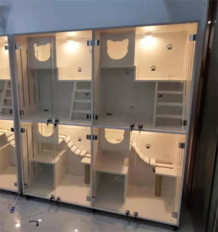 Conseils s'élevants et éraflure des courriers : Des villas à plusiers étages de chat sont souvent équipées des conseils s'élevants et les poteaux d'éraflure qui permettent à des chats de se déplacer entre les niveaux et de satisfaire leur désir naturel de s'élever et rayer. Cette conception s'ajoute non seulement à l'amusement, mais exerce également le corps et les PATTES du chat.
