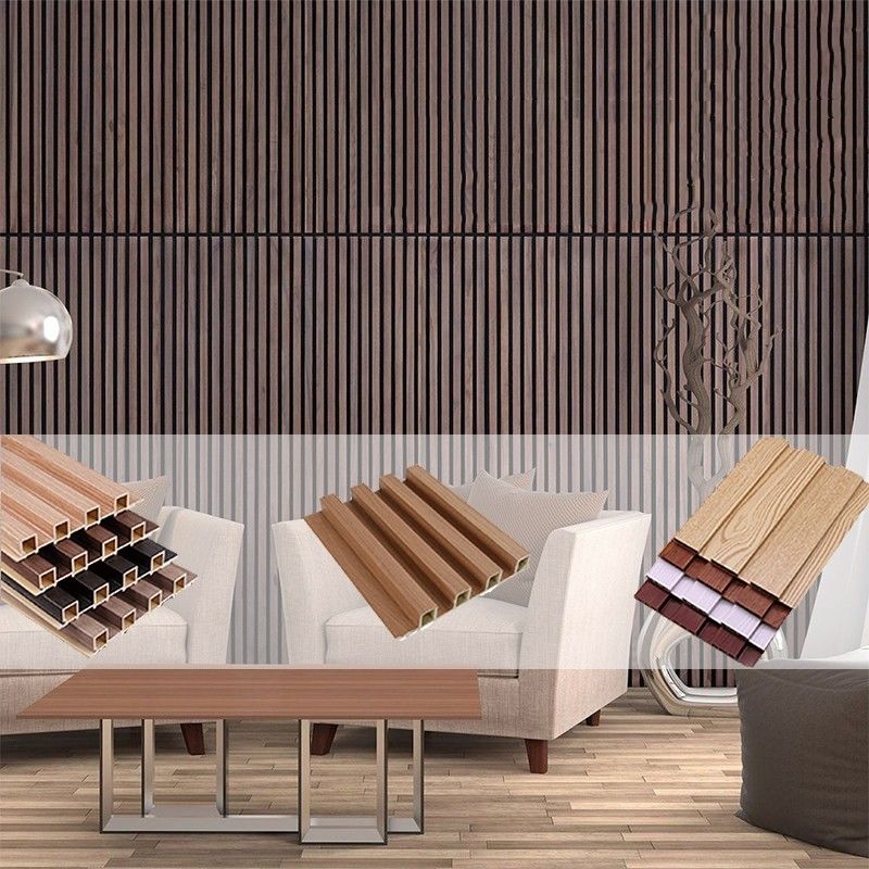 PVC Wpc de prix de gros a tuyauté le panneau de mur de wpc de Lamin de revêtement de panneau de mur en bois 15mm Wpc d'Eco de décoration intérieure de panneau de mur
