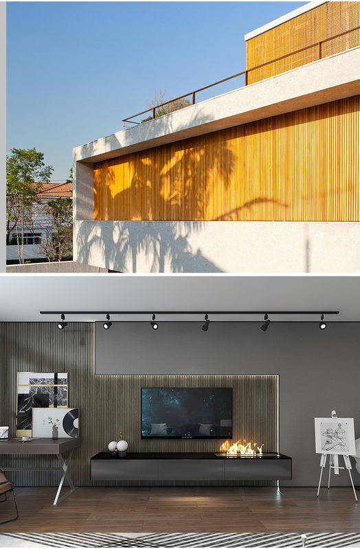 Endroits commerciaux : Le type panneau mural intérieur en plastique en bois de protection de l'environnement de gril de WPC peut être employé pour la décoration des endroits commerciaux, tels que des lobbys d'hôtel, des centres commerciaux, des bureaux, etc. Ses caractéristiques favorables à l'environnement et effet esthétique ajoutent l'élégance et le luxe à l'endroit d'affaires et attirent l'attention des clients.