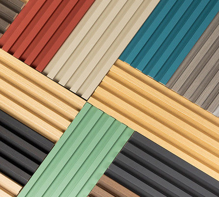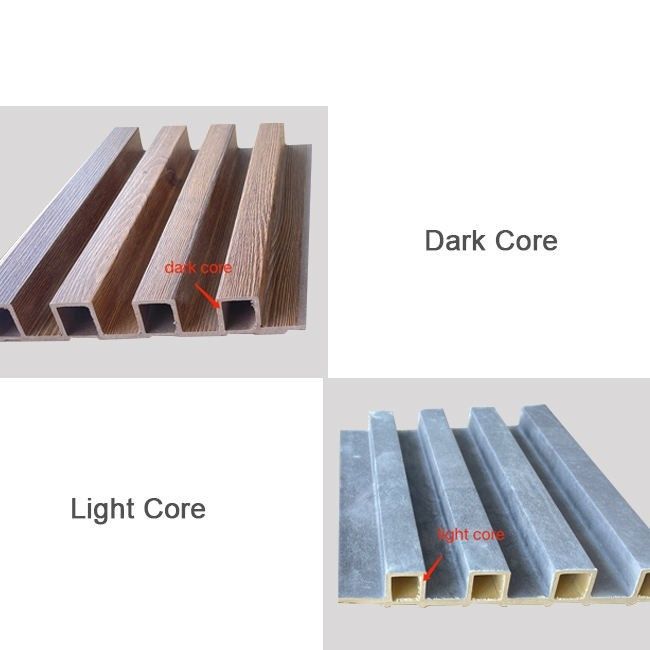 Panneau de bâche de PVC : La surface du panneau de mur est couverte par le PVC, et le matériel de PVC a l'excellente longévité et le nettoyage facile, de sorte qu'il puisse mieux protéger le panneau de mur de bois-plastique, et augmente le lustre et la beauté du mur.