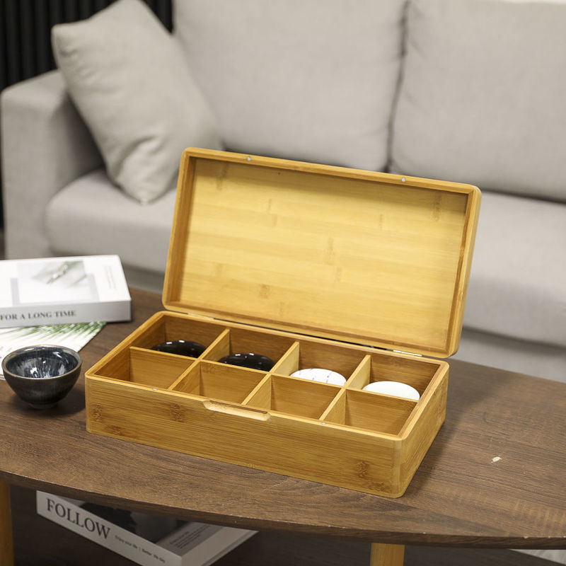 Boîte en bois à thé de sac de boîte en bambou en bois faite sur commande d'emballage pour empaqueter avec le couvercle articulé