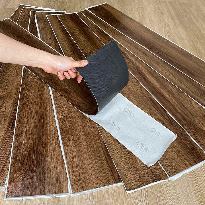 Revêtement de sol en vinyle brillant Tuile de vinyle imperméable Lvt Revêtement de sol en vinyle de luxe Autocollant Tuile de sol à décoller et à coller